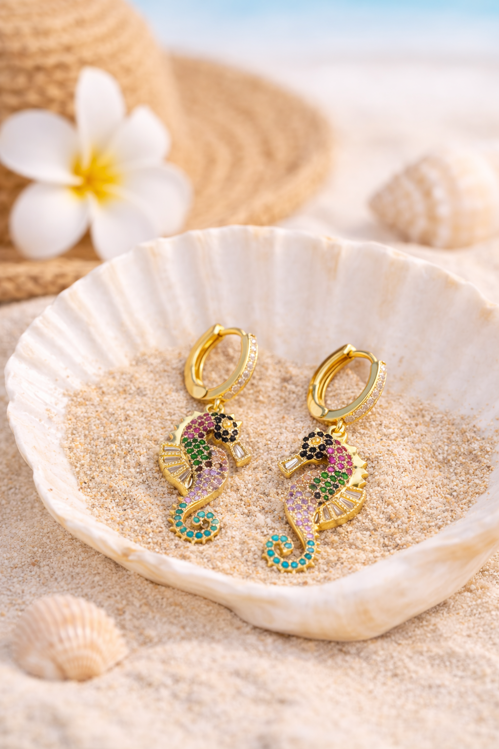Whether you’re channeling mermaid vibes or simply adding a splash of tropical glamour, these earrings are designed to catch the light—and every eye in the room.
